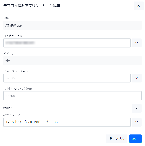 | コンピュートID | アプリケーション実行環境(AT-NFV-APL)の識別子(シリアル番号)を選択します |