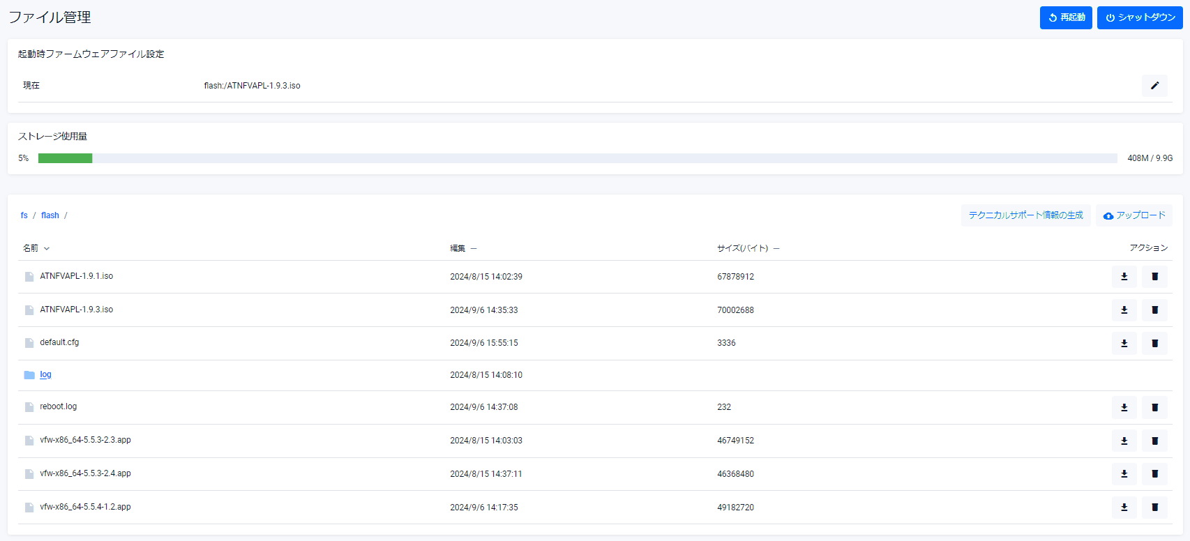 | ストレージ使用量 | AT-NFV-APLのストレージ使用状況が表示されます |