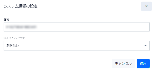 NoteGUIタイムアウトの設定は製品上には保存されず、ブラウザーのローカルストレージに保存されます。GUIタイムアウトを設定した後にブラウザーやクライアント端末を変更したり、異なるオリジンを持つURLを使用してアクセスした際には初期設定で動作します。