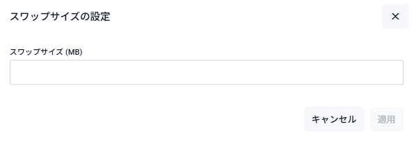 | スワップサイズ (MB) | スワップ領域のサイズを入力してください。 指定可能なサイズの最小値は256 (MB)。最大値は以下のいずれか小さいほうとなります。 ・32,768 (MB) ・ストレージサイズの半分 |
