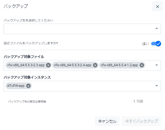 | バックアップ対象インスタンス | バックアップするアプリケーションの設定(ライセンス、シリアル番号含む)を選択します |