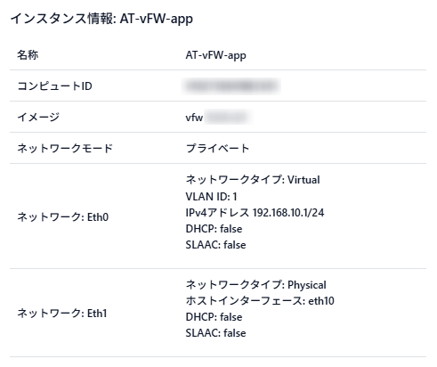 | MAC | MACアドレス。ネットワークタイプが「Virtual」かつ「インスタンス作成」で「MACアドレス (オプション)」を指定している場合だけ表示されます |