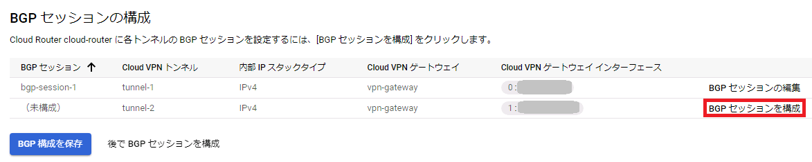 router bgp 65000 bgp router-id 169.254.0.2 network 169.254.0.0/30 network 169.254.4.0/30 network 192.168.1.0/24 neighbor 169.254.0.1 remote-as 64512 neighbor 169.254.0.5 remote-as 64512