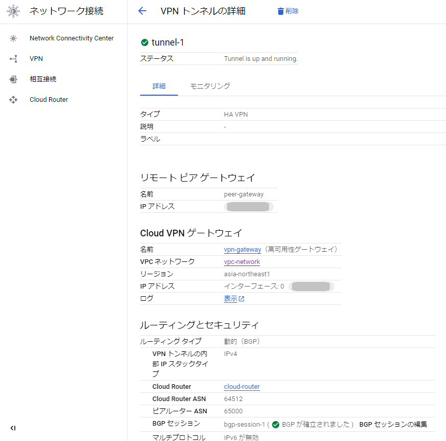 | WAN側(ppp1)IPアドレス | 10.0.0.2/32 |