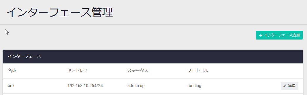 | IPv4アドレス | 192.168.10.1/24 | 未設定 |