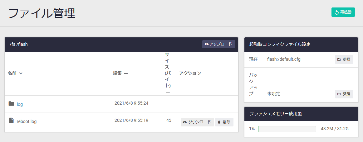 | ファームウェアファイル | 現在使用中のファームウェアイメージファイルが表示されます |