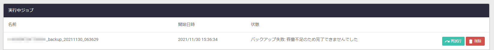 | バックアップ先の推定必要容量 | バックアップ保持数を加味して計算されたUSBメモリーに必要な容量の推定値です。実際に作成されるサイズとは異なります。 バックアップ対象のアプリケーションが実行中の場合は、実際に使用されているストレージサイズをもとに算出されます。 停止済みの場合は、作成時に割り当てたストレージサイズをもとに算出されるため、実際に必要な容量とは大きく異なることがあります |