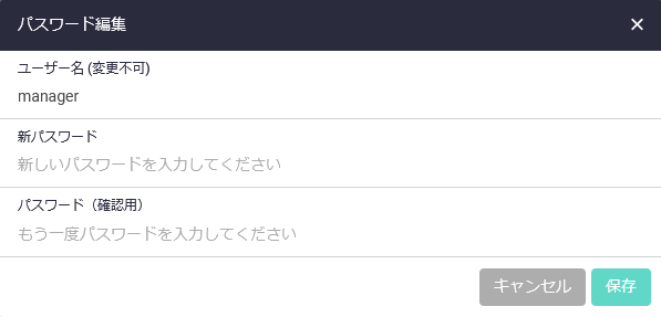 | パスワード編集ボタン | ユーザーのパスワードを変更するためのパスワード編集ダイアログが開きます |