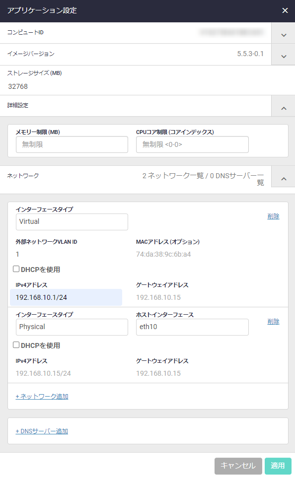 | コンピュートID | AT-NFV-APL本体のシリアル番号 | 未選択 |