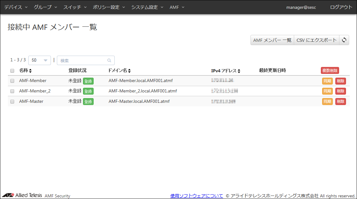 NoteAMFメンバーの管理はAMFメンバーのホスト名で行うため、名称はAMFメンバーのホスト名と同一にしてください。