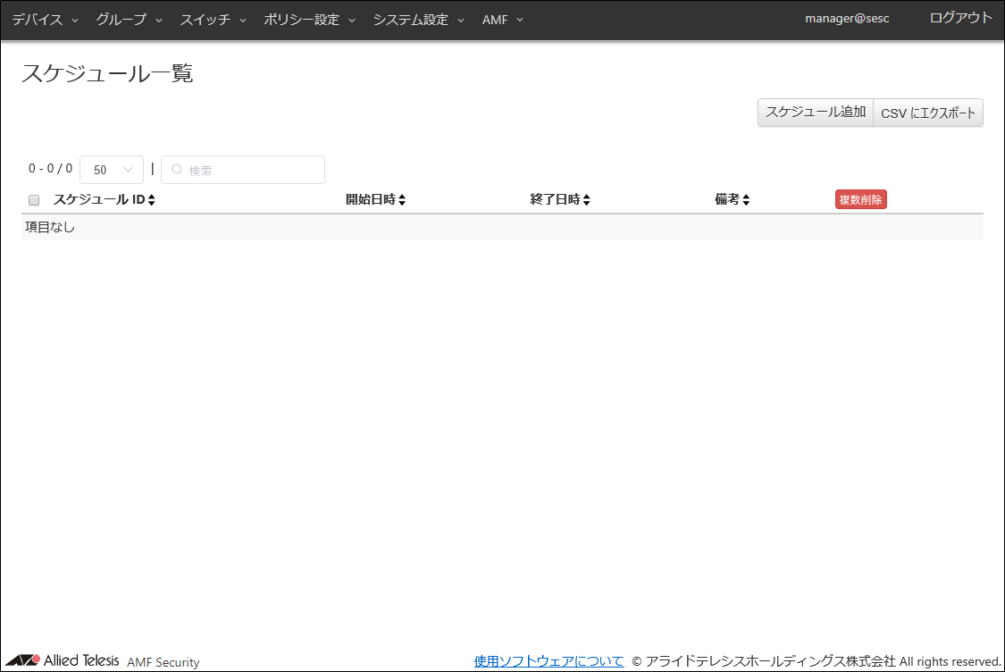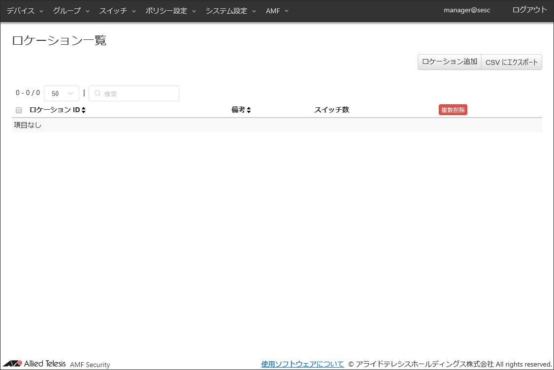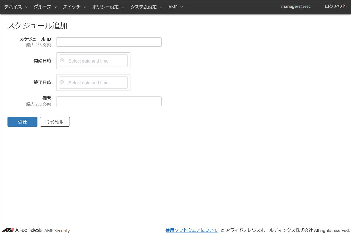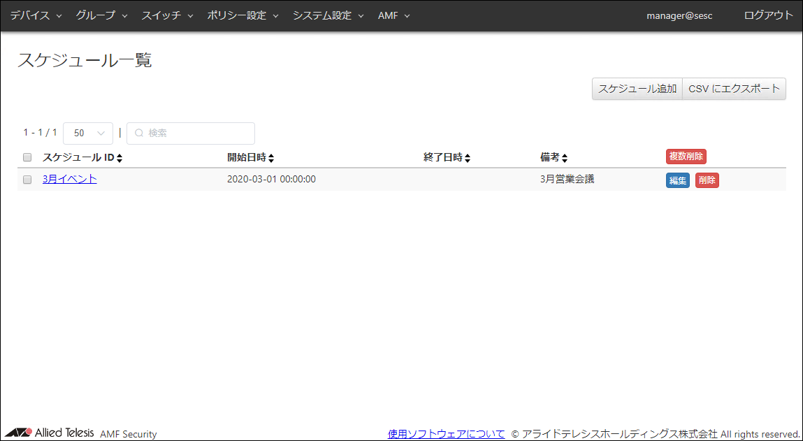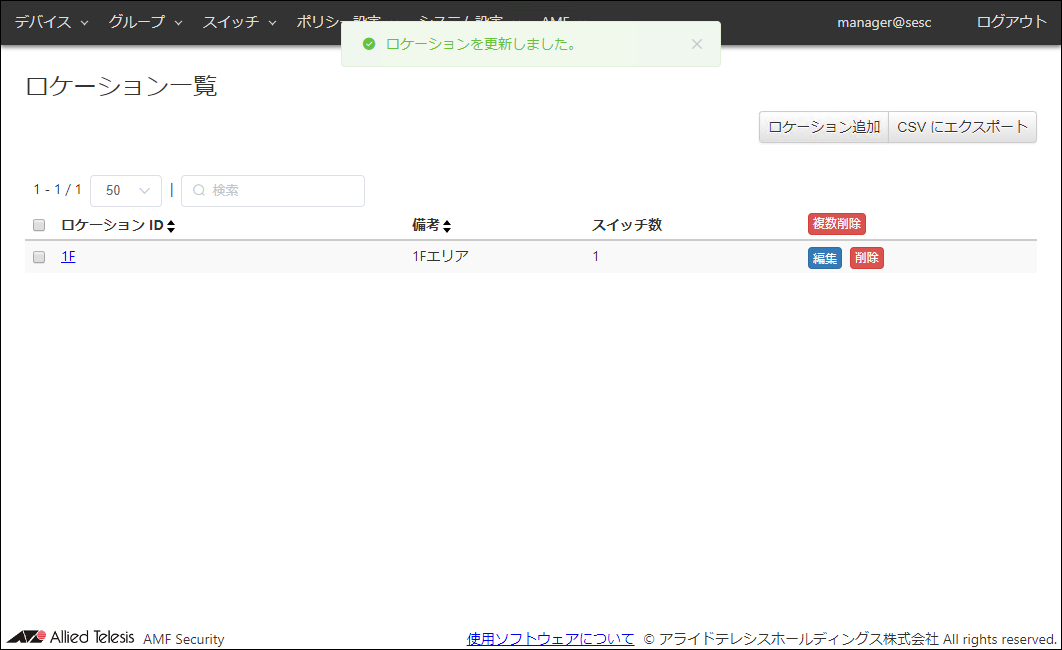 | 備考 | #1Fスイッチ | AMFメンバーの追加説明やコメントを記載できます。 備考は最大255文字で、英数字、記号以外に日本語も使用できます。 |