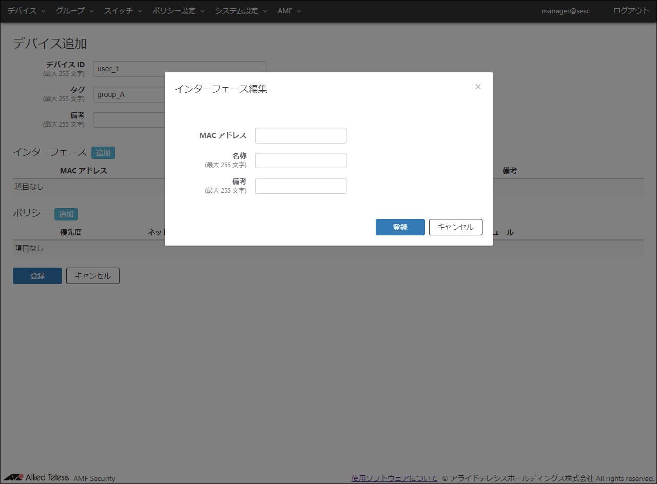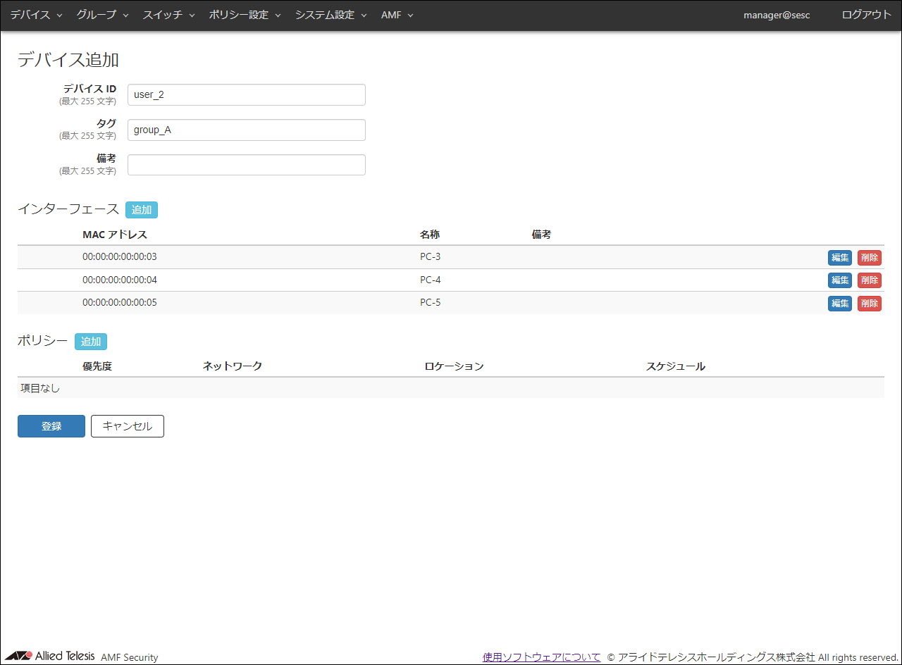 | インターフェース(MAC アドレス) | 00:00:00:00:00:03 00:00:00:00:00:04 00:00:00:00:00:05 |