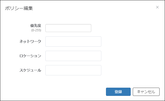 | 登録 | 新しいポリシー情報を登録、または、選択したポリシー情報を更新します。 |