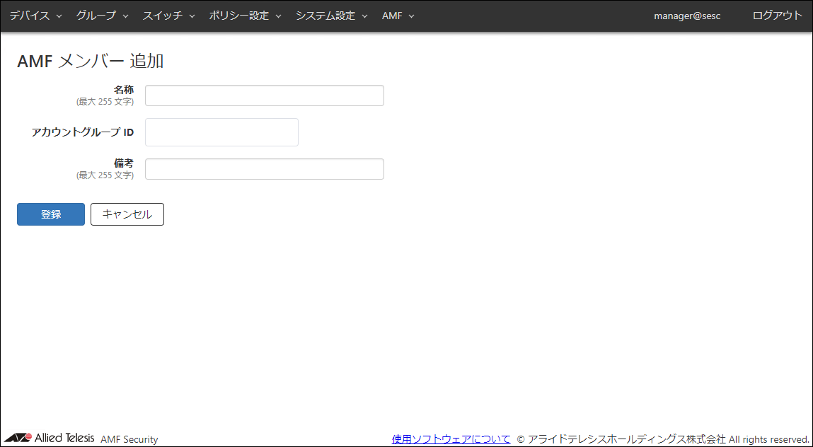 | 登録 | 入力したAMFメンバー情報を新規に登録します。 |