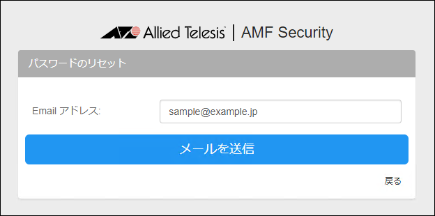 AMF Security miniにSMTPサーバーを登録してある場合、AMF Security miniのログイン情報を忘れたときは、アカウントに関連付けられたメールアドレスを使用してログイン情報を復旧させることができます。
