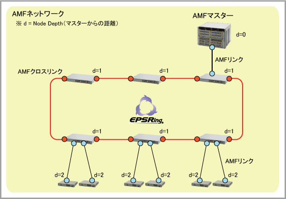 これにより、リングを構成するノードはすべて同一階層となり、AMFネットワーク全体の階層レベルが浅くなります。