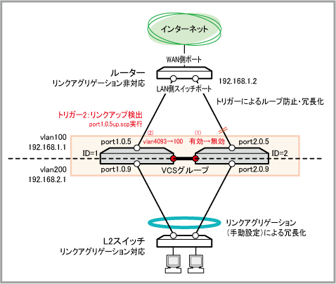 トリガー機能を利用したリンクアグリゲーション非対応機器への回線冗長化