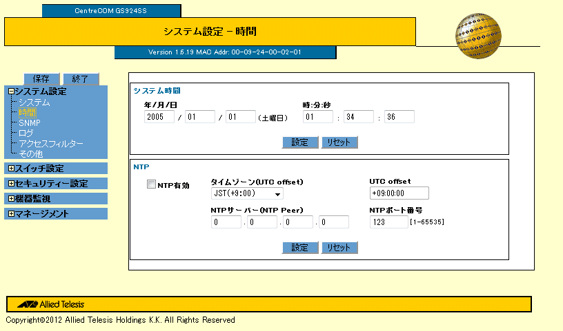 SNTPの詳細については、「運用・管理」/「SNTP」をご覧ください。