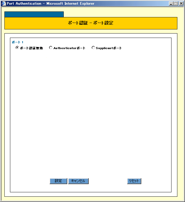 ポートのポート認証機能を無効にしたい場合は、「ポート認証無効」をチェックを付けます。