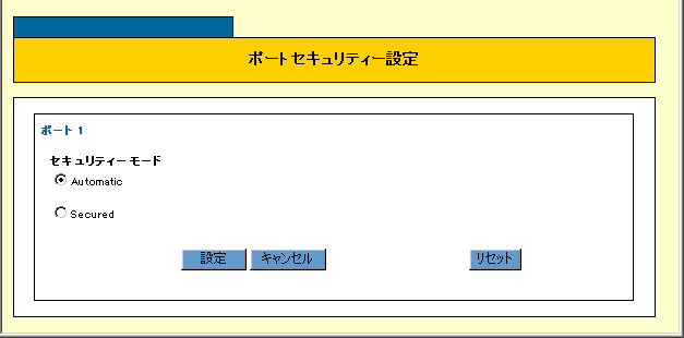 「ポートセキュリティー設定」で、ポートセキュリティーの設定を行います。