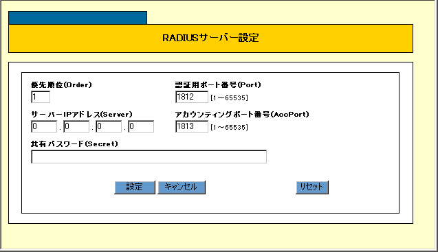 RADIUSサーバーの優先順位を指定します。「1」固定です。