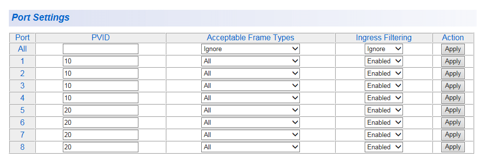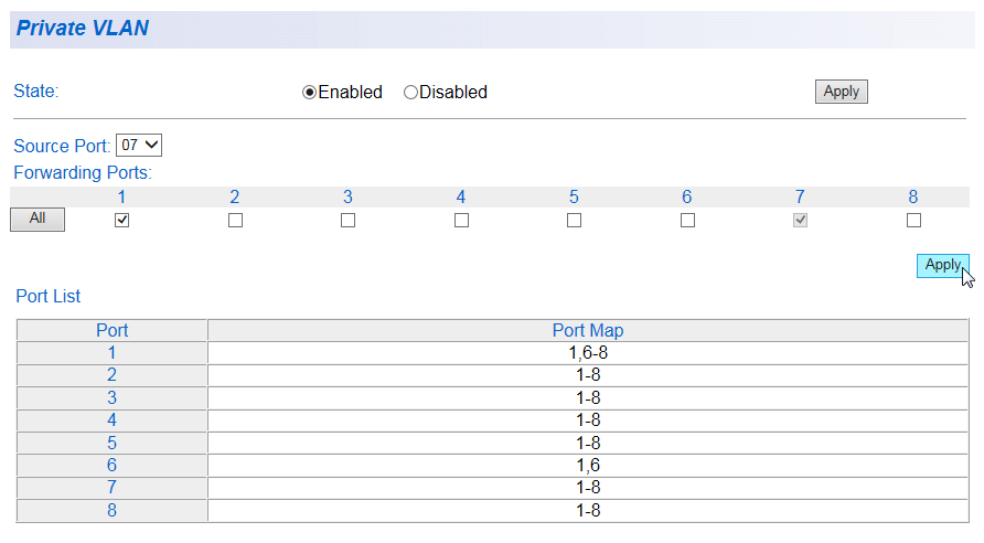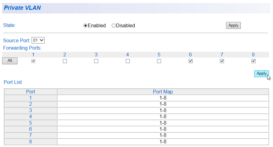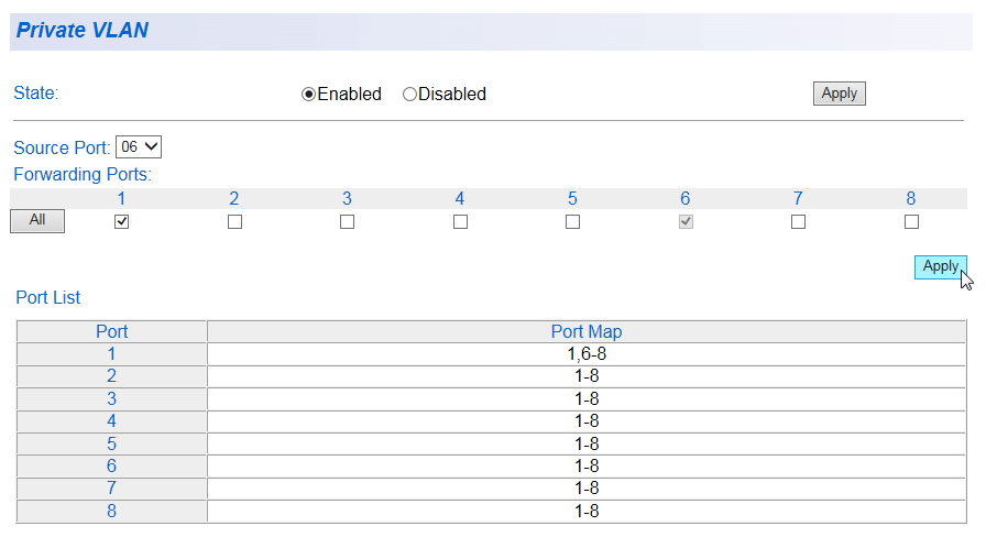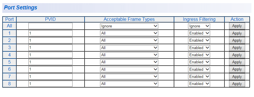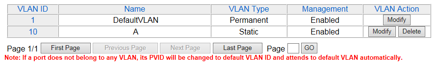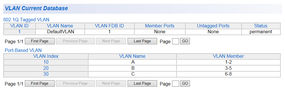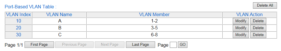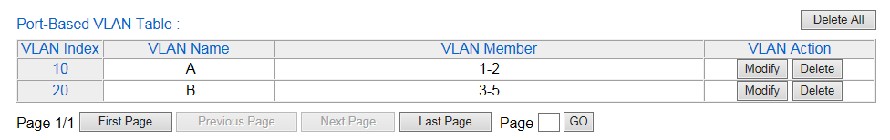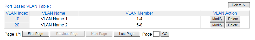 | Port-Based VLAN Table |