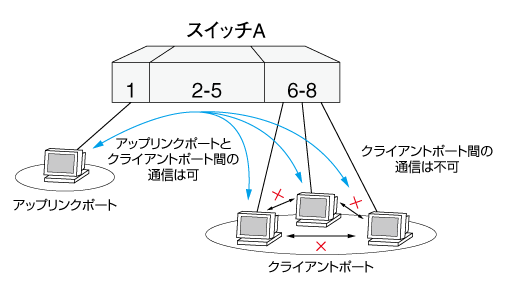 Note - ポートベースLANモードのポートでは、タグなしパケットとVLAN ID=0のタグ付きパケット(プライオリティータグパケット)だけを転送し、その他のタグ付きパケットは破棄します。