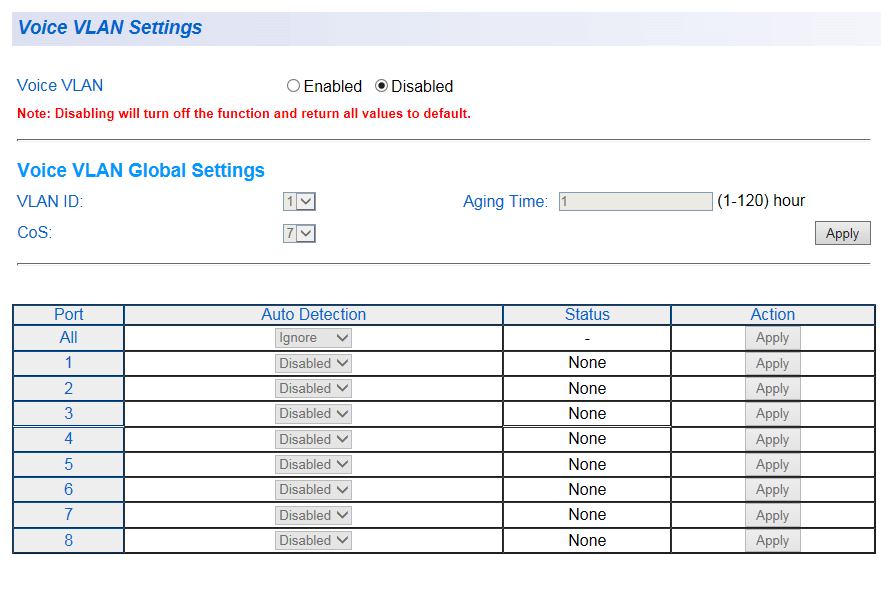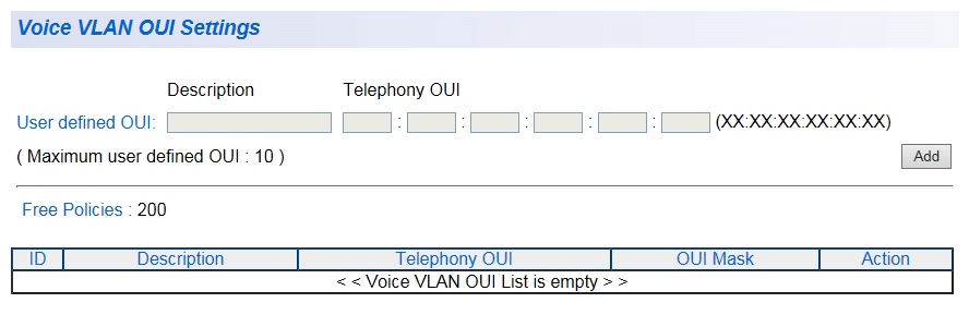 - Voice VLAN Settings(サポート対象外) - Voice VLAN OUI Settings(サポート対象外)