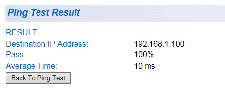 本製品では指定したアドレスに対してPingテストを行い通信の疎通を確認できます。