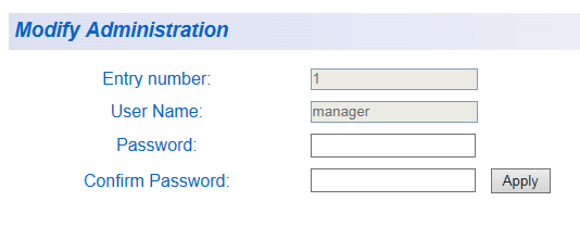 | User Name | ユーザー名を設定します。1〜12文字まで指定可能です。 デフォルトでは「manager」が設定されています。 |