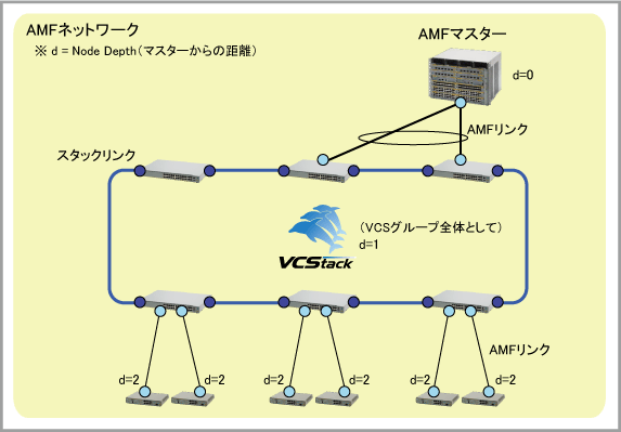マスターを復旧させればAMFの管理機能も再び使えるようになるため、AMFの観点からは必須ではありませんが、マスターを2台配置して二重化することも可能です。
