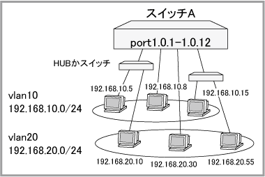 以下の各節では、上記をふまえ、最初にもっとも基本的なVLANであるポートVLANとタグVLANについて説明したのち、その他のVLANについて簡単に説明します。