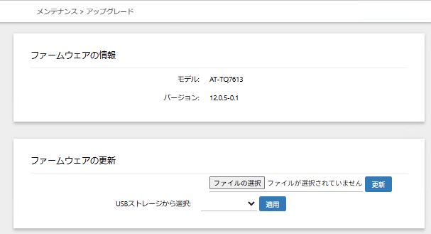 | アップグレード | 現在設定しているファームウェアのバージョンの確認、ファームウェアのアップグレードが行えます。 |