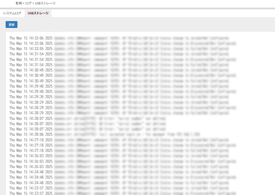 | ログ | システム、USBストレージで発生したイベント情報の確認が行えます。 |