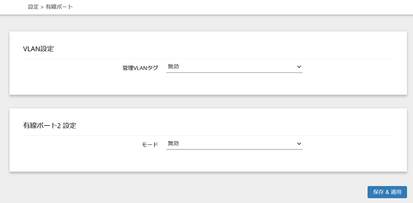 | 有線ポート | 管理VLANタグの有効/無効、管理VLAN IDの設定、スタティックLAG・カスケード接続・LACPの設定が行えます。 |