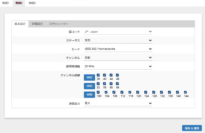 | 無線2(5GHz High Band) | 121 | 79 | 5GHz:100,104,108,112,116,120,124,128,132,136,140 |