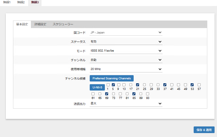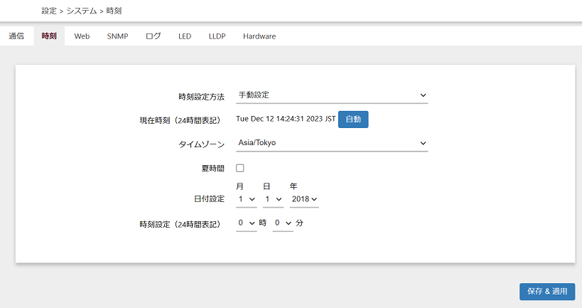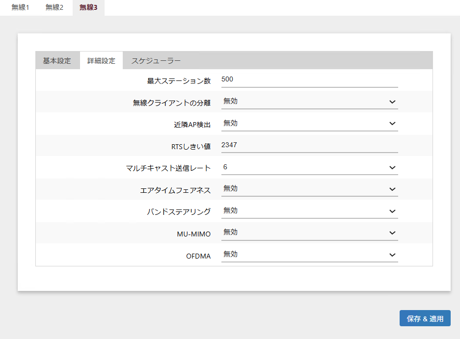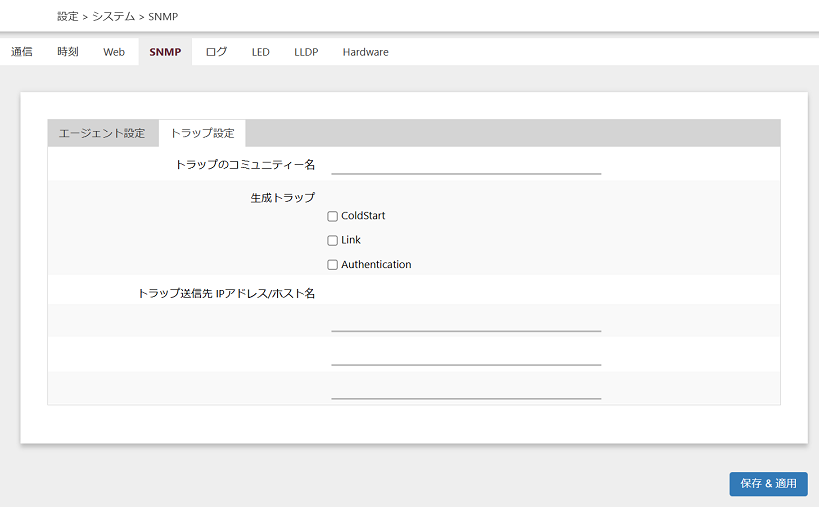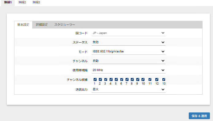 各管理画面において、設定変更を行った場合は、画面を移動する前に「保存&適用」ボタンを必ずクリックしてください。