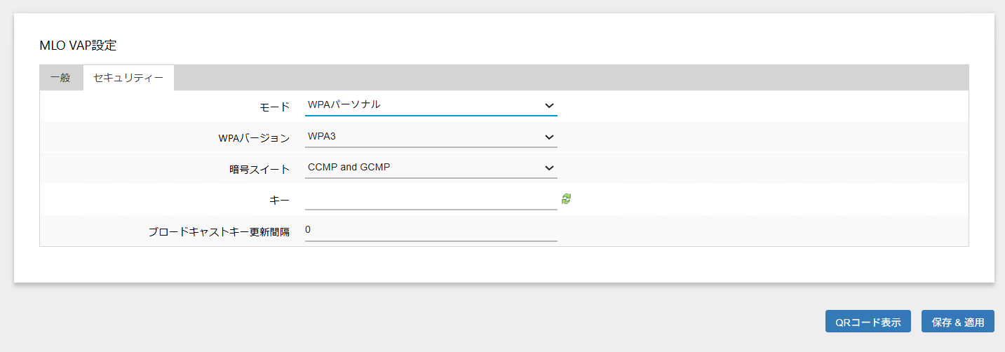 | MLOネットワーク | MLOネットワークの有効/無効、MLOネットワークで使用する無線、SSID、セキュリティーの設定が行えます。 |