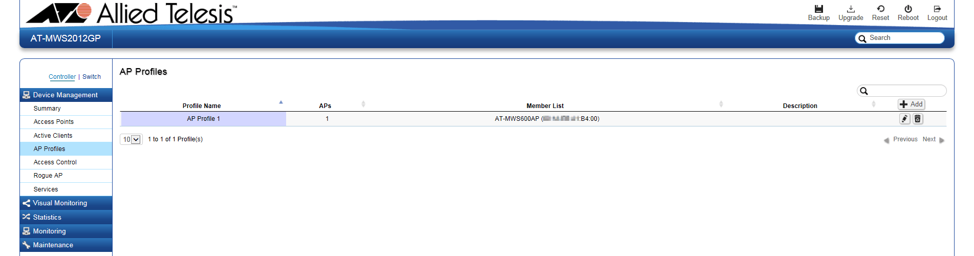 | Member List | プロファイルが適用されたアクセスポイントのデバイス名を表示します。 |