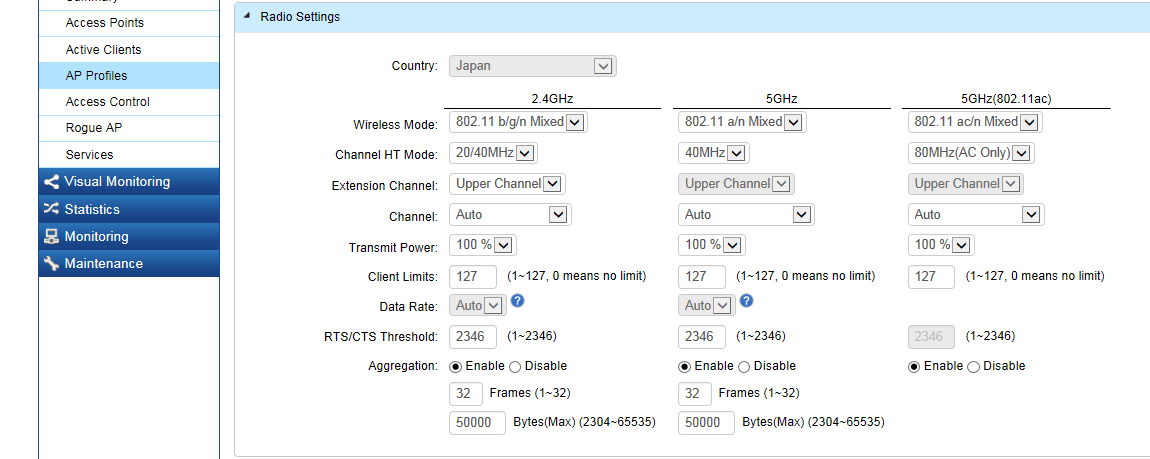 - Profile Setting - General Settings - Radio Settings - WLAN Settings - 2.4GHz・5GHz - Advanced Settings