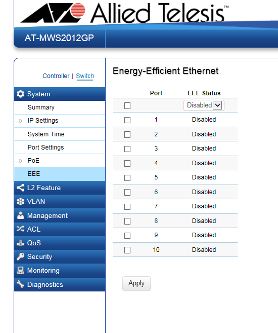 IEEE 802.3az 省電力イーサネット(EEE:Energy-Efficient Ethernet)機能についての設定を行います。