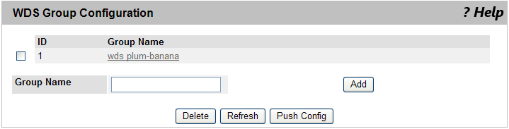 | Push Config | WDSグループの情報をクラスターに属すすべての無線コントローラーにプッシュします。クラスターコントローラーにおいてだけ、このボタンを使用できます。WDSグループの内容を変更したら最後に必ずこのボタンをクリックしてください。 |