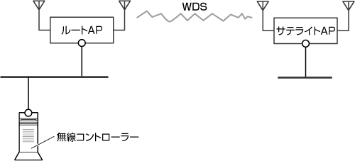 「サテライトAP」は、「ルートAP」とのWDS接続を介して無線コントローラーと接続しているアクセスポイントです。